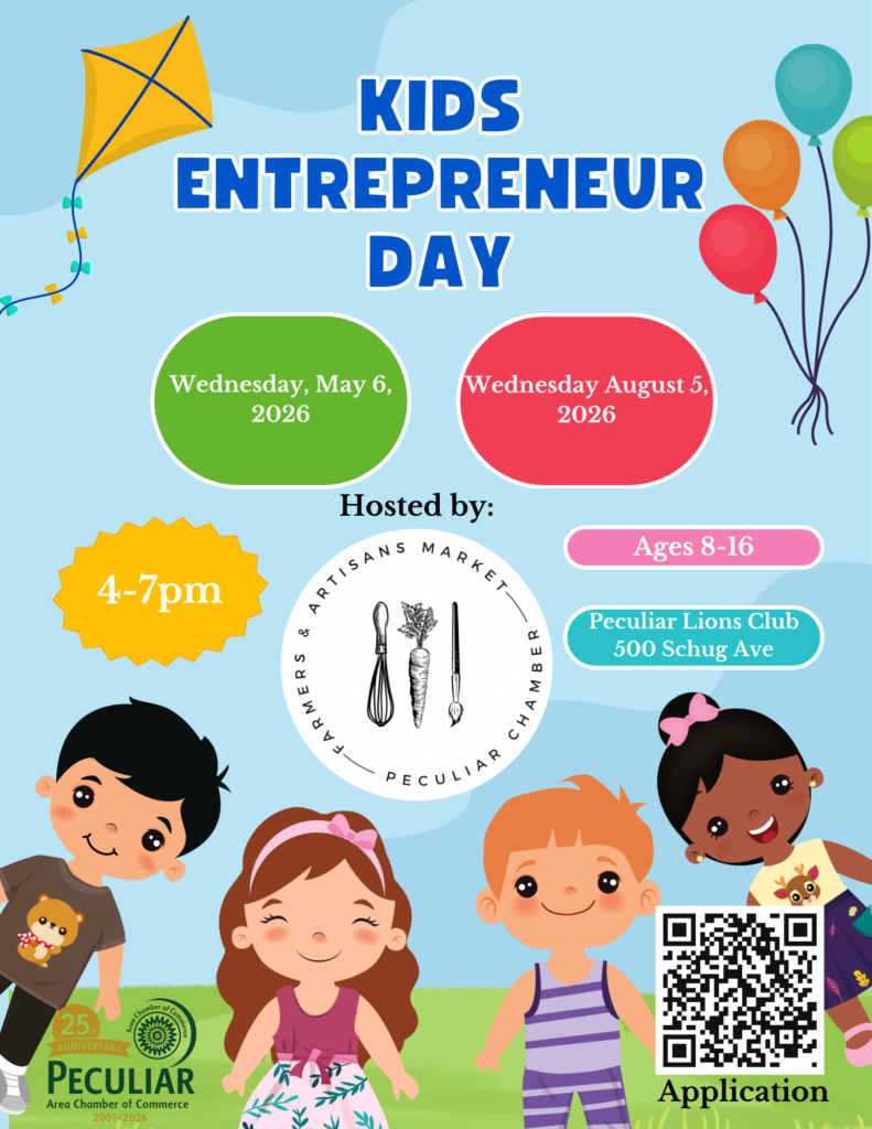 Shannon Wells serves as the Chamber Manager for the Peculiar Area Chamber of Commerce and plays a key role in planning and managing many of the community’s events, including the Peculiar Farmers & Artisans Market. With a strong focus on organization, communication, and community growth, Shannon works to create opportunities that support local businesses and bring people together.